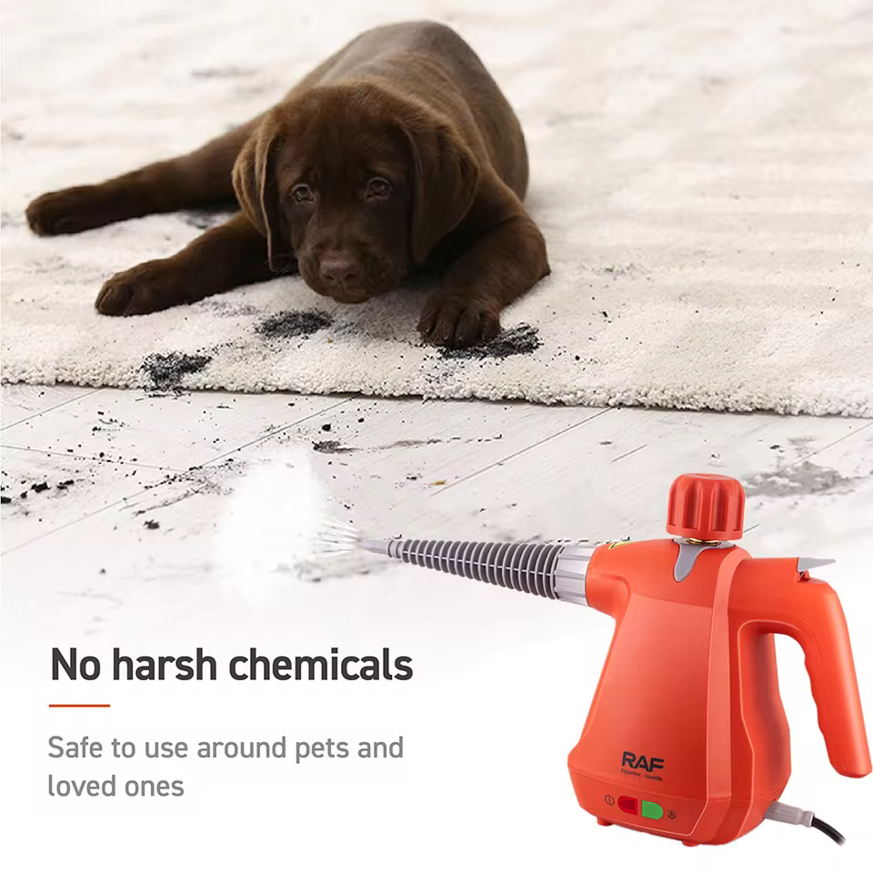 بخار يجلد الوسخ من جذوره! ماكينة تنظيف RAF 1000 واط تنظف وتُعقّم بدون كيماويات، ملحقات ذكية ونظافة تفتح النفس للبيت والسيارة.