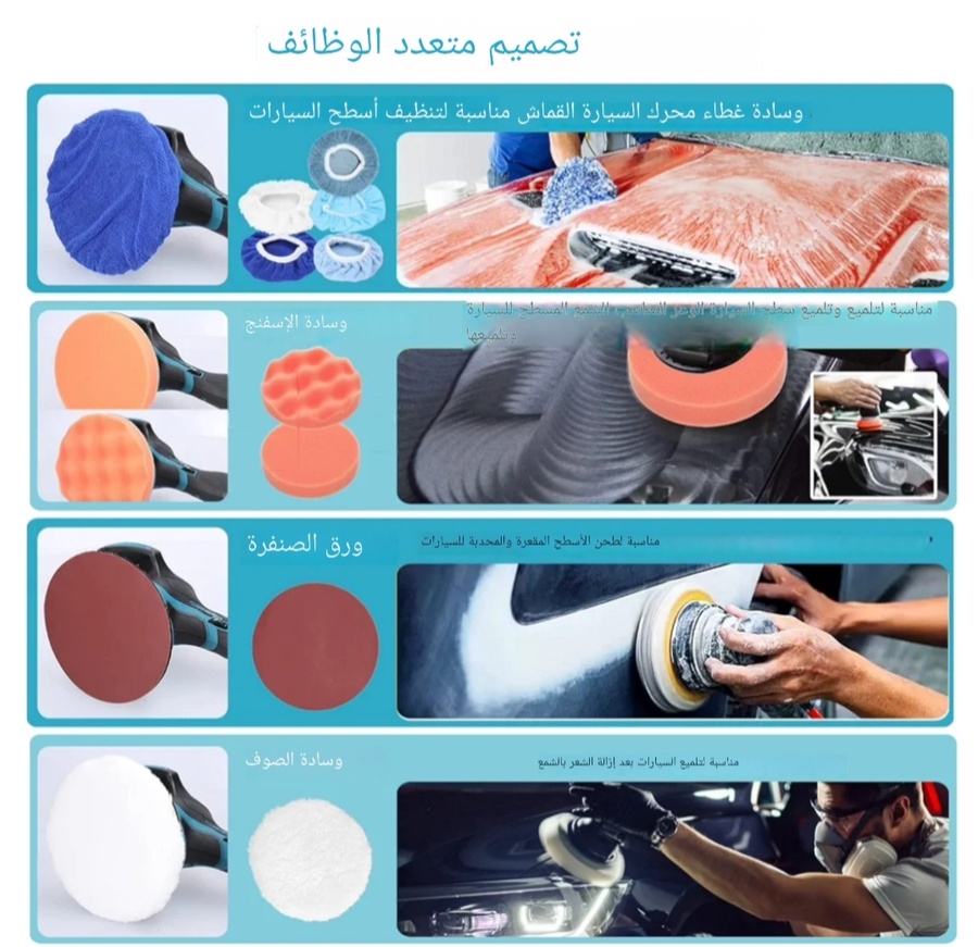 مع تصميمه العملي والقوي، يمكنك استخدامه في تلميع السيارات، تنظيف الفايبر، البلاستيك، الجنوط، الأنوار، وأكثر من ذلك بكثير. هذا الجهاز سيختصر لك وقت التنظيف بشكل رهيب ويساعدك على تحقيق نتائج احترافية.