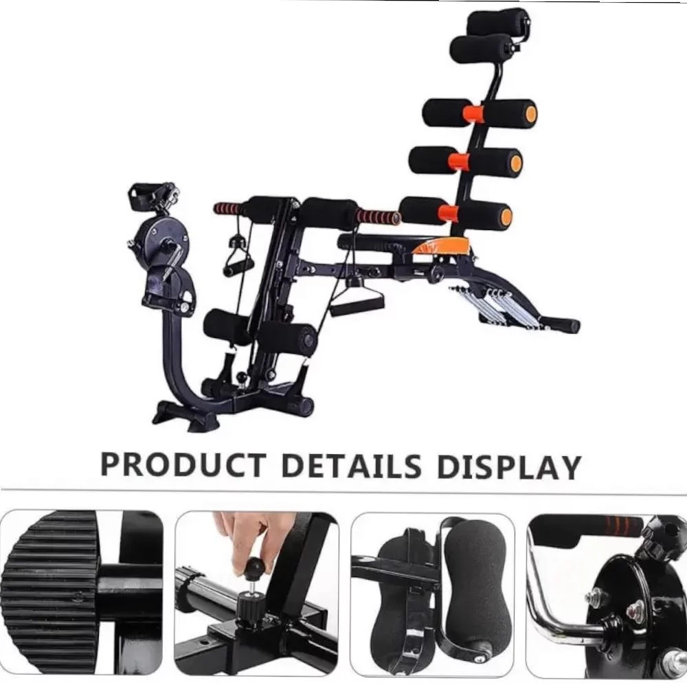 هل تبحث عن جهاز رياضي فعّال يساعدك في التخلص من الكرش وشد الجسم دون الحاجة للذهاب إلى النادي؟ جهاز تمارين الرياضية 6 في 1 هو الحل الذكي الذي يجمع لك 6 تمارين مختلفة في جهاز واحد! يغطي مختلف مناطق الجسم مثل البطن، الكتف، الظهر، الفخذين والقدمين.