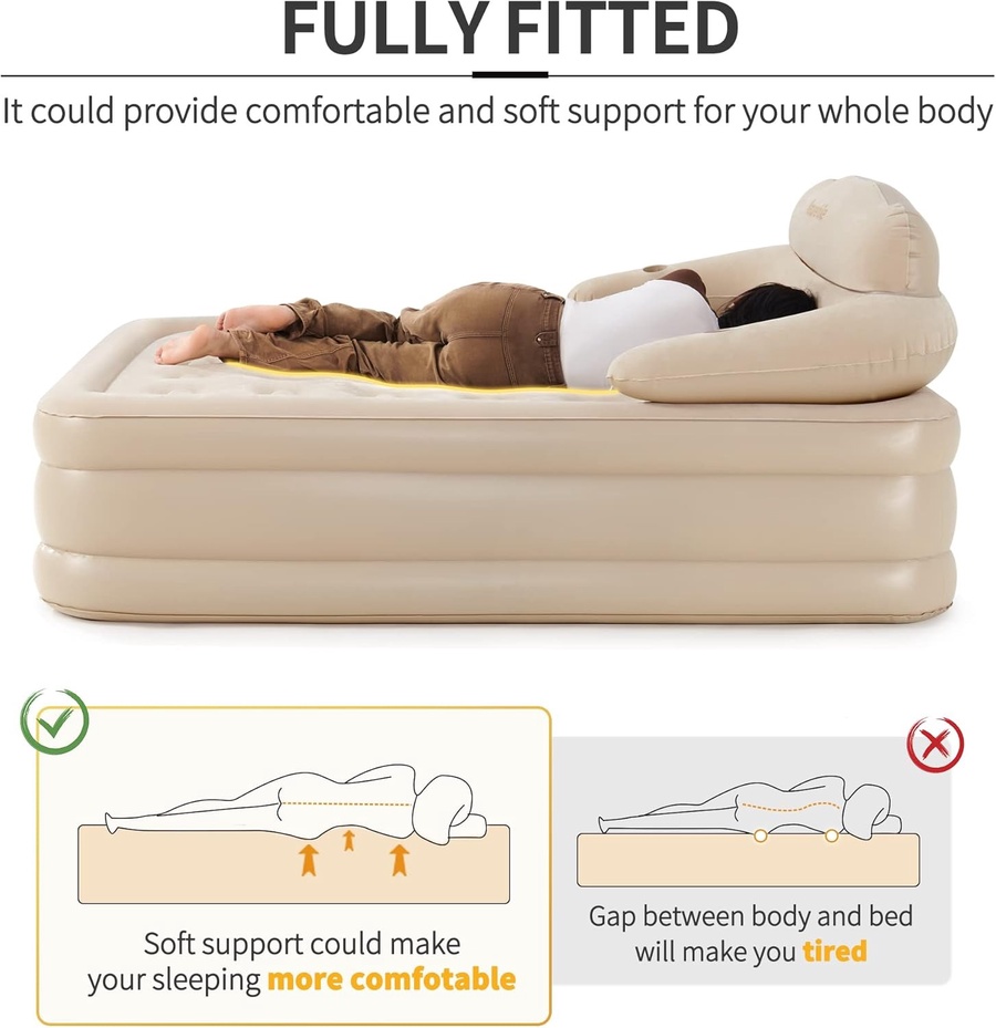 🛏️ تصميم مرتفع لسهولة الاستخدام مسند ظهر مدمج نظام نفخ كهربائي مدمج🎒 قابل للطي مع حقيبة تخزين👨👩👧👦 يتحمل استخدام شخصين