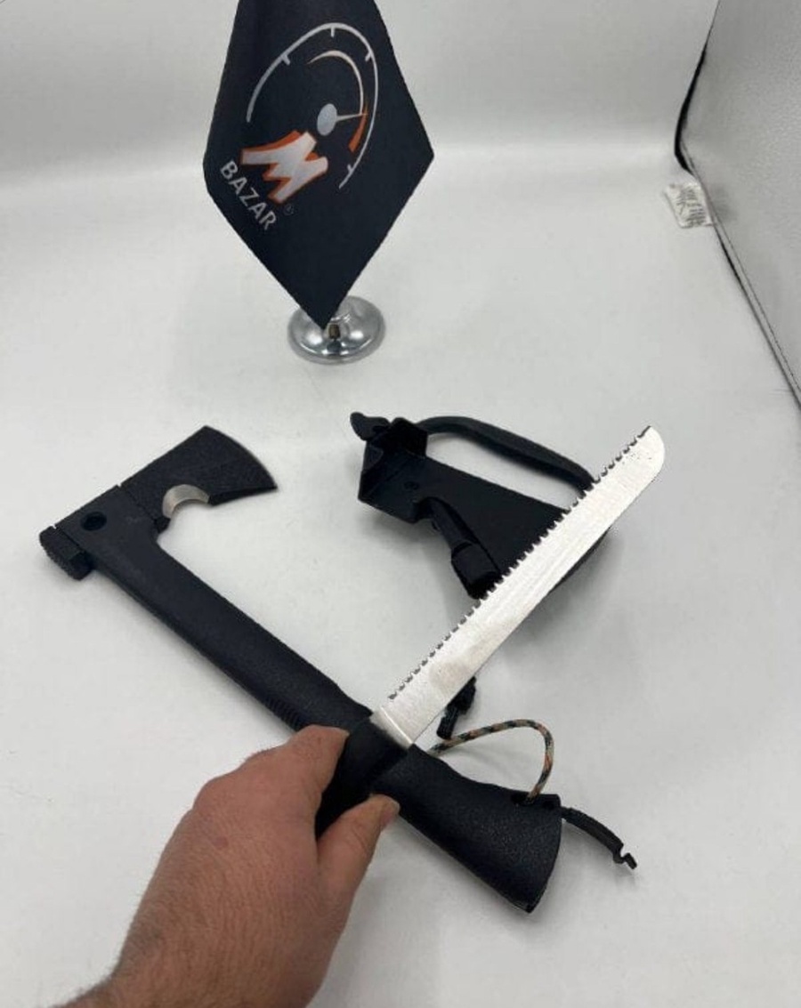 هل تبحث عن أداة متعددة الاستخدامات تجعل رحلاتك في البرية أسهل وأكثر أمانًا؟ لا تبحث أكثر! نقدم لك فأس وسكين حاد مخفي للرحلات، المصنوع من مواد عالية الجودة ومطلي بالكربون بصلابة قوية، مما يجعله مثاليًا لكل مغامر.
