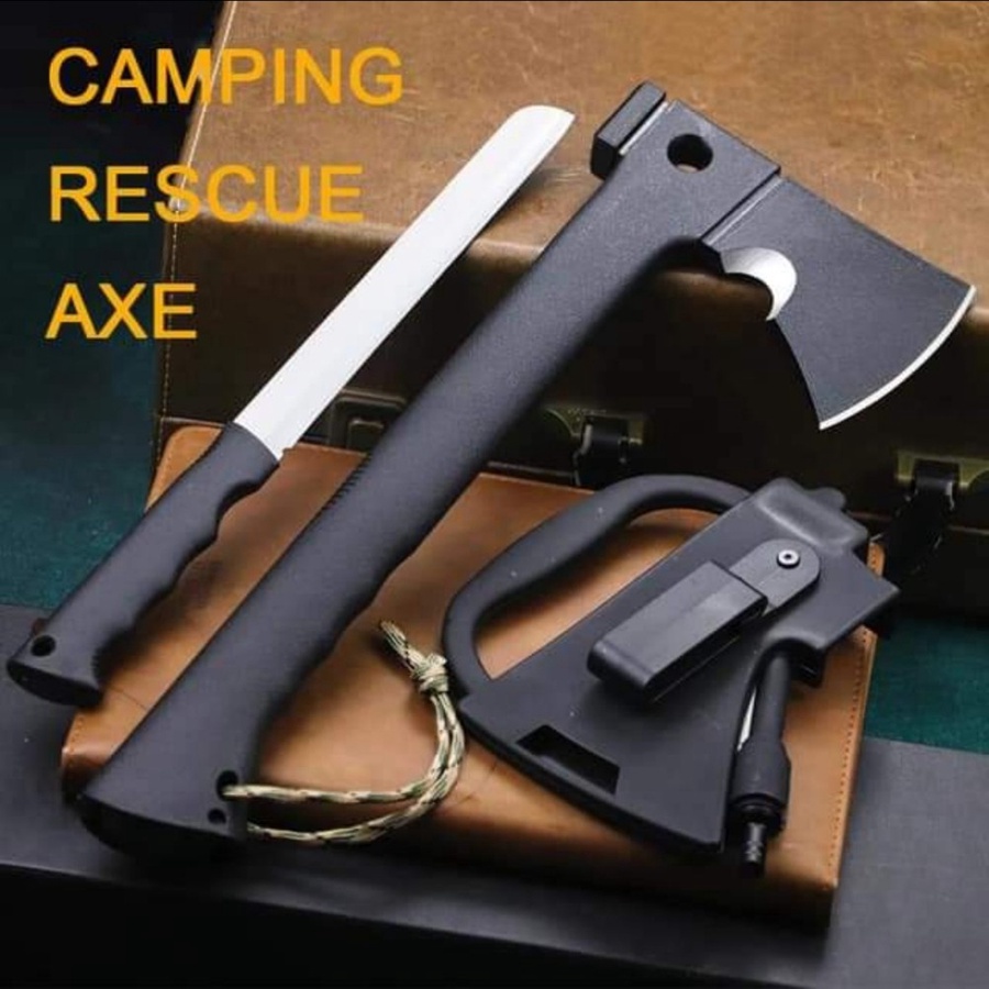 فأس متعدد الاستخدام مع سكين مخفية + قداحة نار + صافرة نجاة… تصميم احترافي يجمع القوة والأمان في قطعة واحدة 👌
