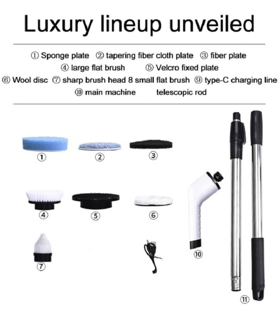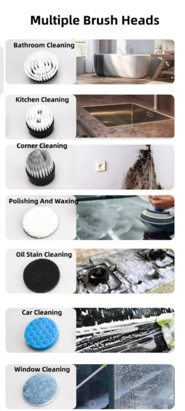 تتميز الفرشاة بسبع رؤوس مختلفة تناسب جميع الأسطح، مما يجعلها مثالية لتنظيف الأرضيات، الجدران، الأثاث، وحتى الزوايا الضيقة. سواء كنت تحتاج لتنظيف الأتربة، البقع، أو حتى الغبار، فإن فرشاة التنظيف اللاسلكية 7 في 1 ستساعدك في إنجاز المهمة بسهولة.
