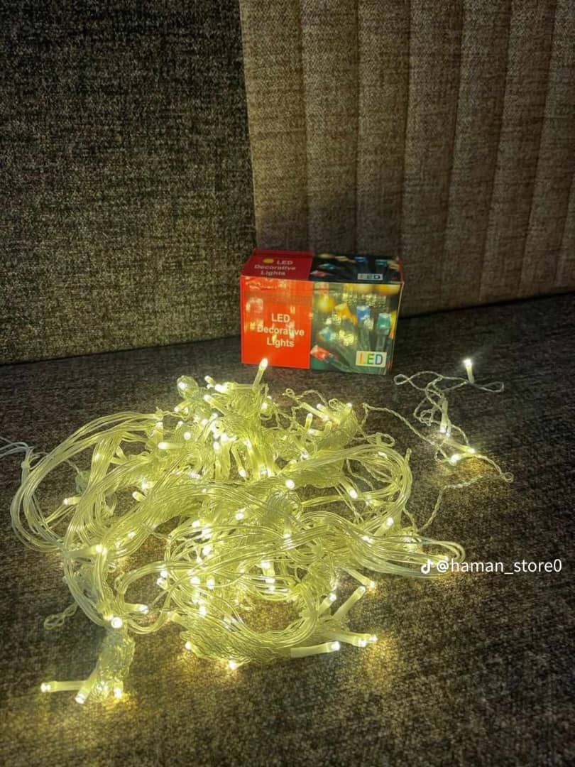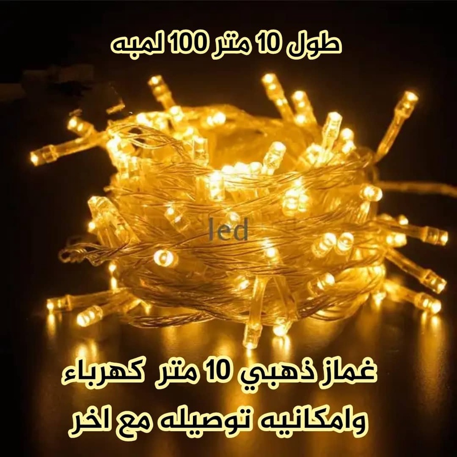 هل تبحث عن إضاءة تضفي روح الفخامة والراحة على أي مكان؟ غماز الزينة LED الذهبي بطول 10 متر هو الخيار المثالي لك! يوفر لك إضاءة دافئة وناعمة تجعل الغرفة أو المناسبة تبدو أكثر أناقة وجاذبية، سواء كنت تستخدمه في المنزل أو في حفلاتك الخاصة أو حتى لتزيين رمضان.