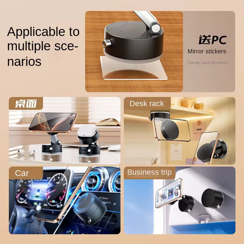 - قاعدة شفط جبارة: مزود بتقنية شفط فراغية قوية جداً تخليه يثبت على الزجاج، الطبلون، أو أي سطح ناعم كأنه جزء من السيارة.