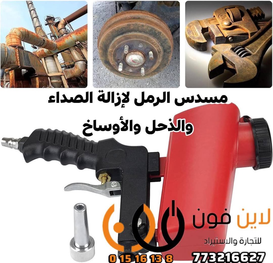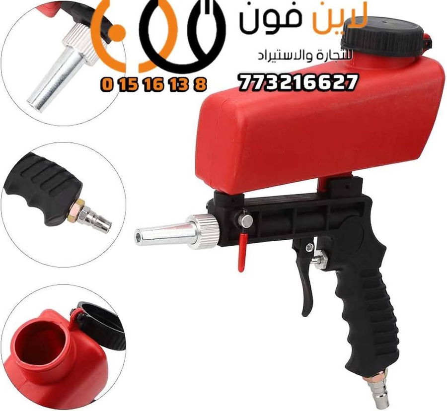 مسدس رمل محمول مع خزان مدمج لتنظيف المعادن وتجديد القطع القديمة. يزيل الصدأ والزيوت بفعالية عالية وبأقل مجهود. متوافق مع جميع أنواع ضواغط الهواء (الكمبروسر). اطلبه الآن."