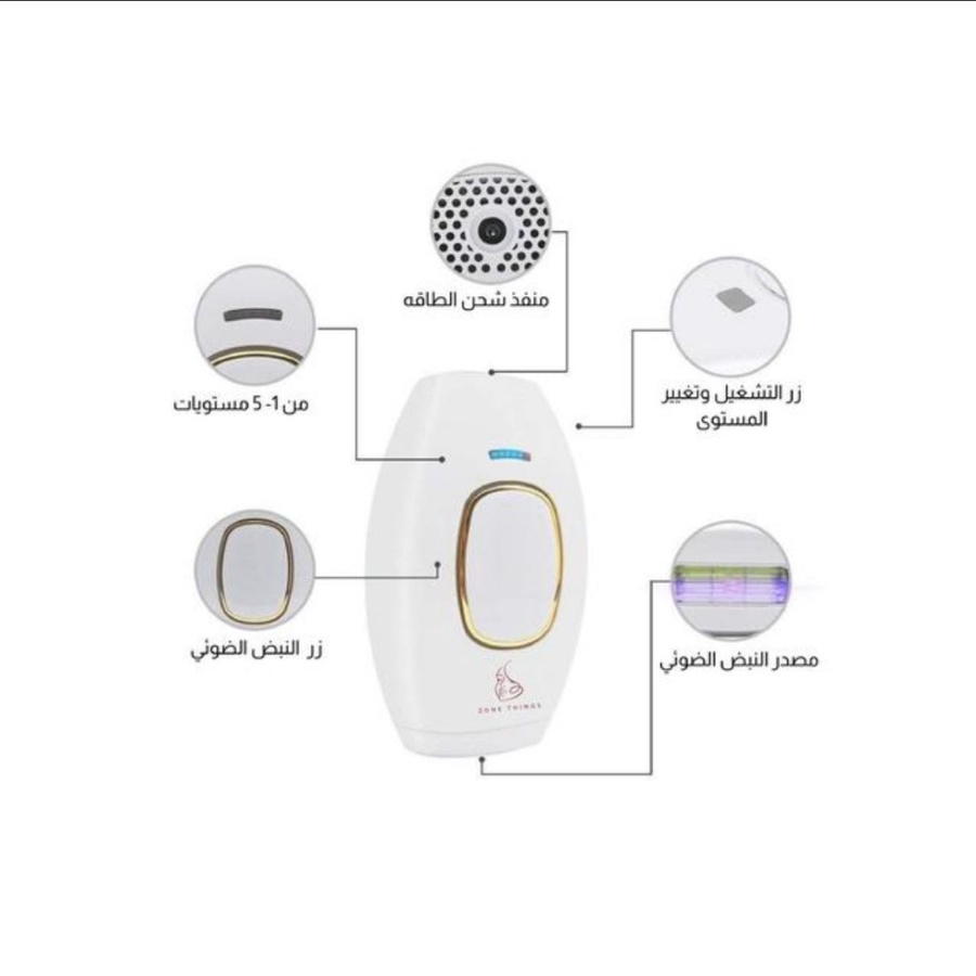 5 مستويات للطاقة تناسب الجميع: مزود بـ 5 درجات قوة مختلفة قابلة للتعديل. تقدري تتحكمي بالقوة (من 1 إلى 5) حسب لون بشرتك وحساسية المنطقة، عشان تضمني الأمان والفعالية القصوى.