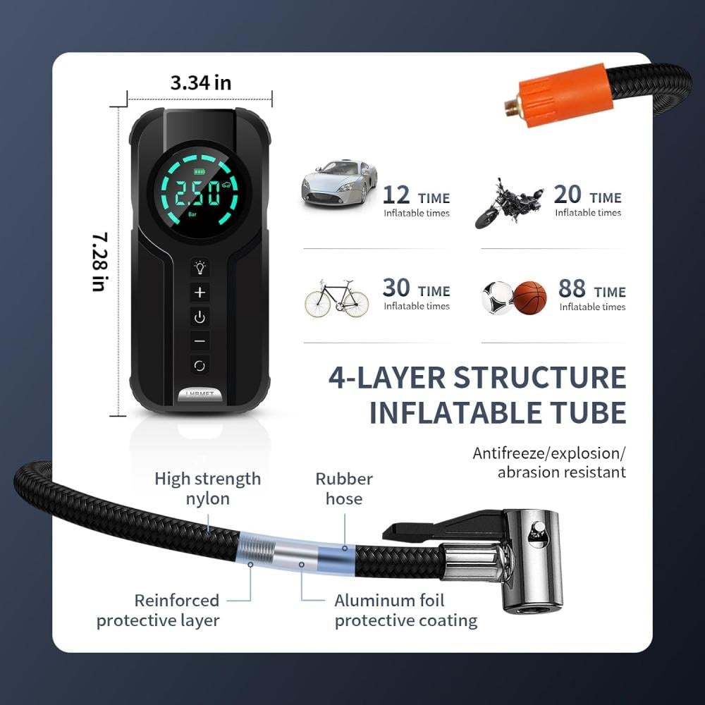 جهاز طوارئ السيارة 2 في 1، اشتراك بطارية ومنفاخ هواء ذكي مع شاشة رقمية وكشاف LED، حل عملي وآمن للسفر والطوارئ