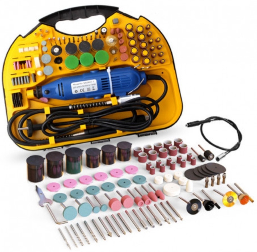 جهاز النحت والصنفرة متعدد الاستخدام 211 قطعة يعطيك تحكم احترافي، قوة ثابتة، وسرعات متعددة تناسب أدق التفاصيل 👌