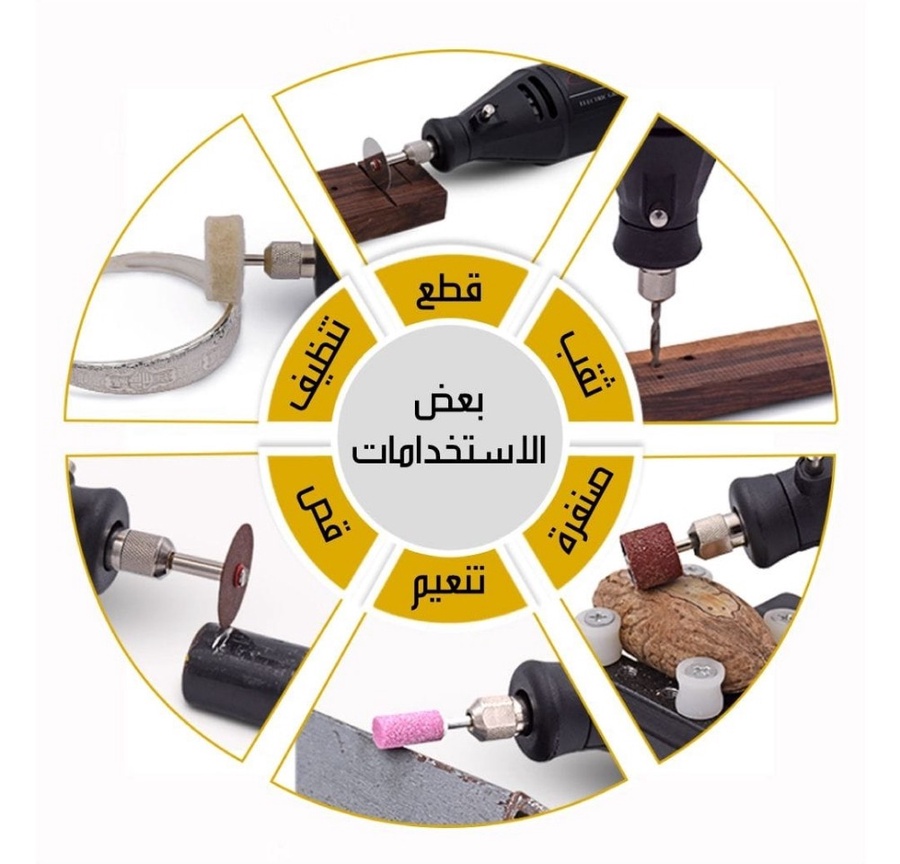 صمم هذا الجهاز ليكون رفيقك المثالي في الأعمال الدقيقة، سواء كنت تعمل في منزلك أو في ورشة عملك. بإمكانك استخدامه لنحت الخشب، صنفرة المعادن، أو حتى لإنجاز الأعمال الفنية بكل سهولة.