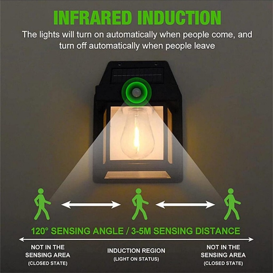 لمبة خارجية شمسية بحساس حركة 3–5م، مقاومة للماء IP65، 3 أوضاع تشغيل وضوء أصفر دافئ، تعمل تلقائيًا بدون أسلاك ومثالية لمداخل المنازل في اليمن