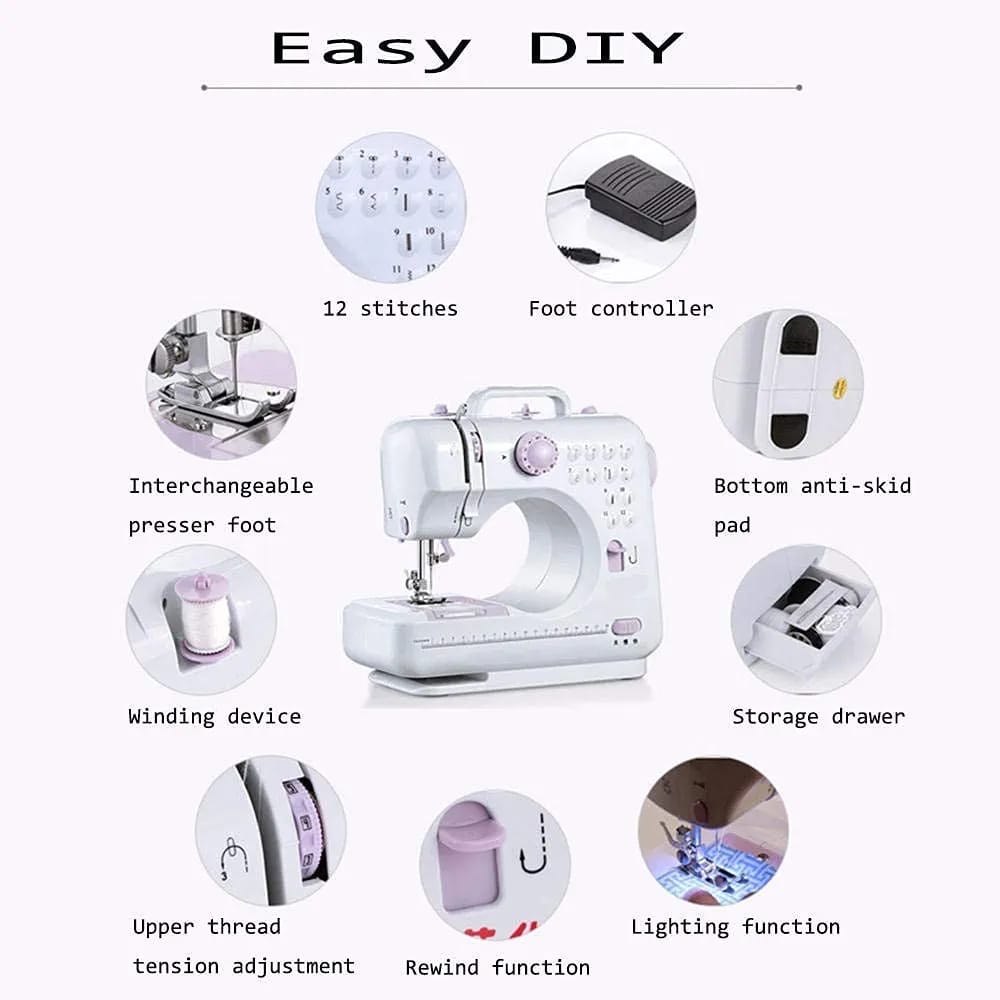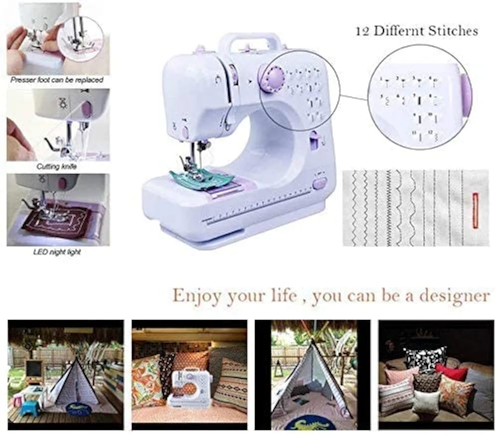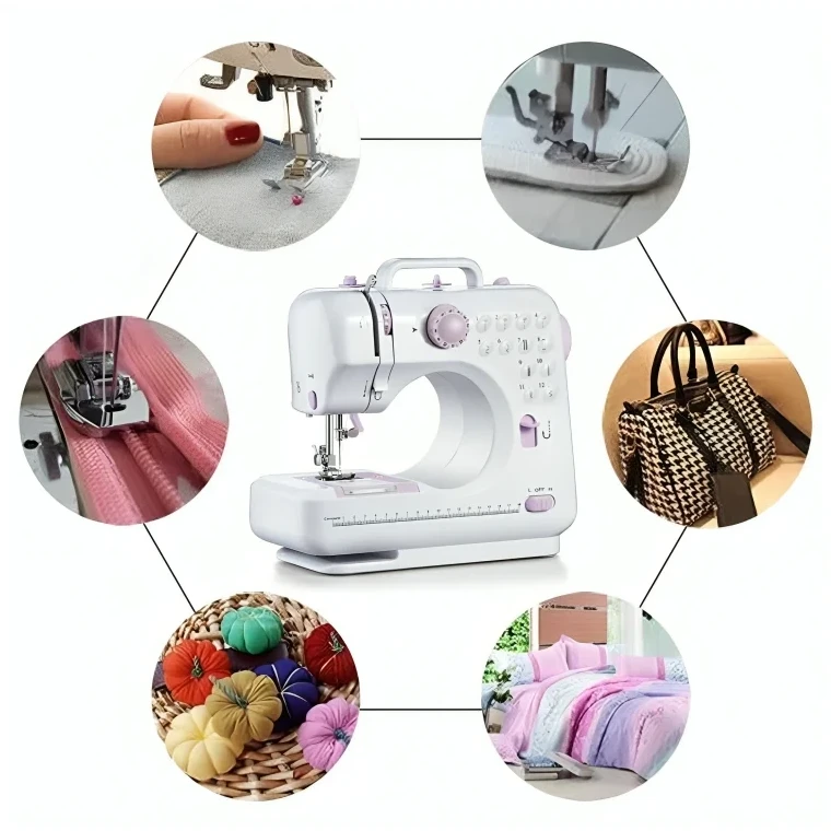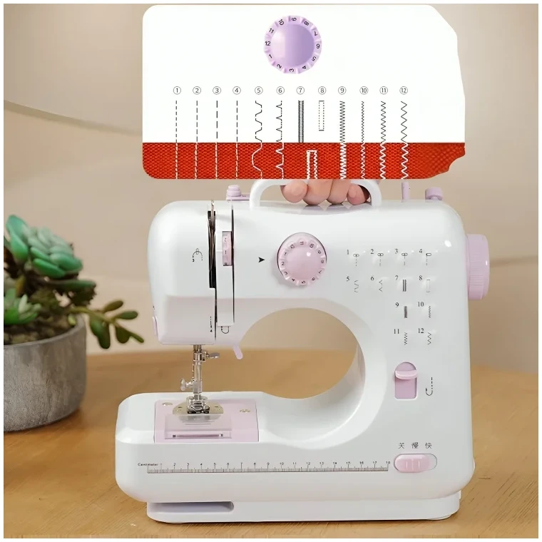 ماكينة خياطة منزلية صغيرة Model 505A متعددة الغرز حل عملي للخياطة المنزلية وتعديل الملابس بسرعة 12 نمط خياطة متنوعة للاستخدام اليومي لوحة تحكم بسيطة