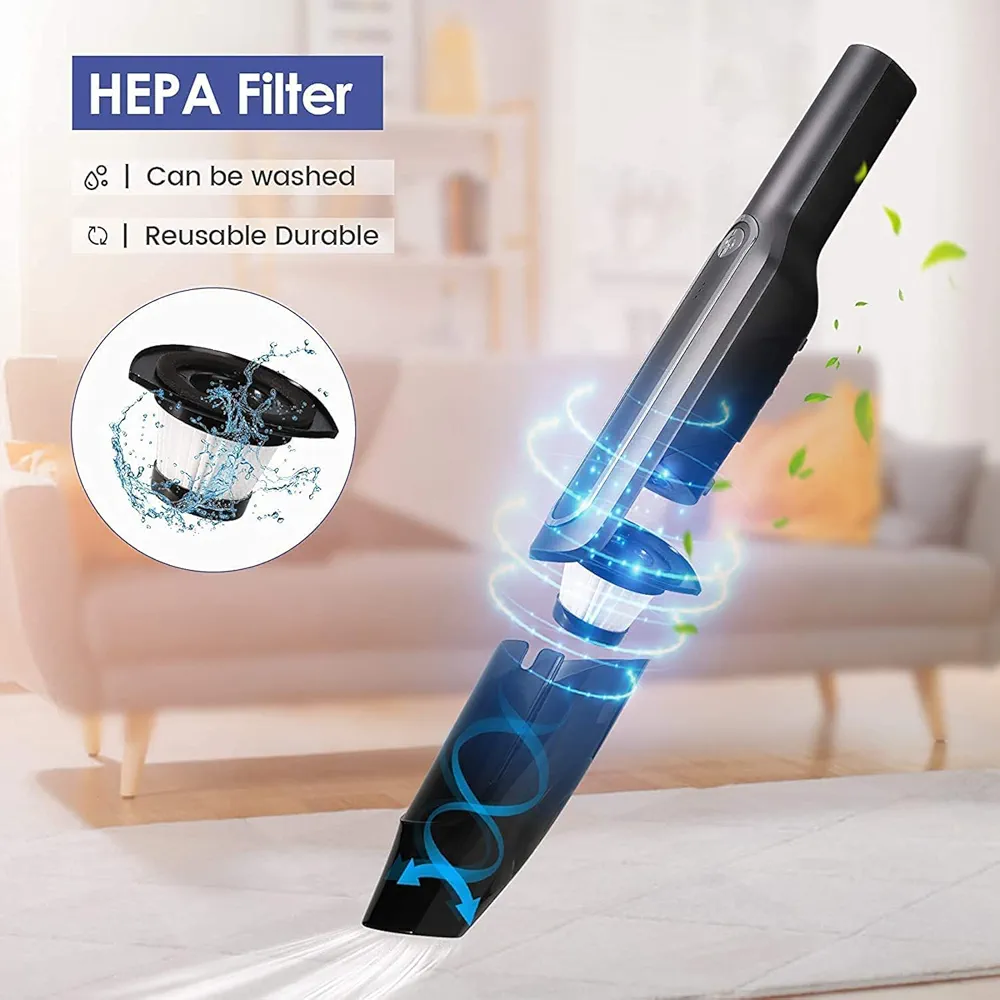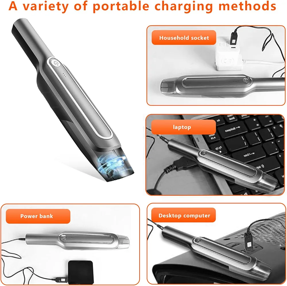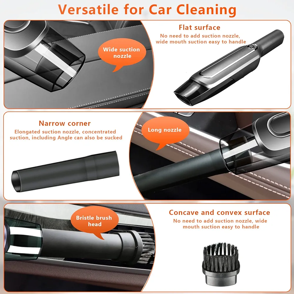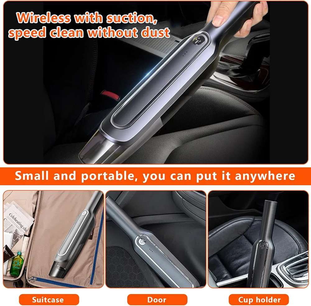 تتميز هذه المكنسة بتصميمها اللاسلكي القابل لإعادة الشحن، مما يتيح لك استخدامها في أي مكان سواء في السيارة، المنزل، أو المكتب. لا تفوت فرصة جعل كل مكان نظيف ومرتب بسهولة!