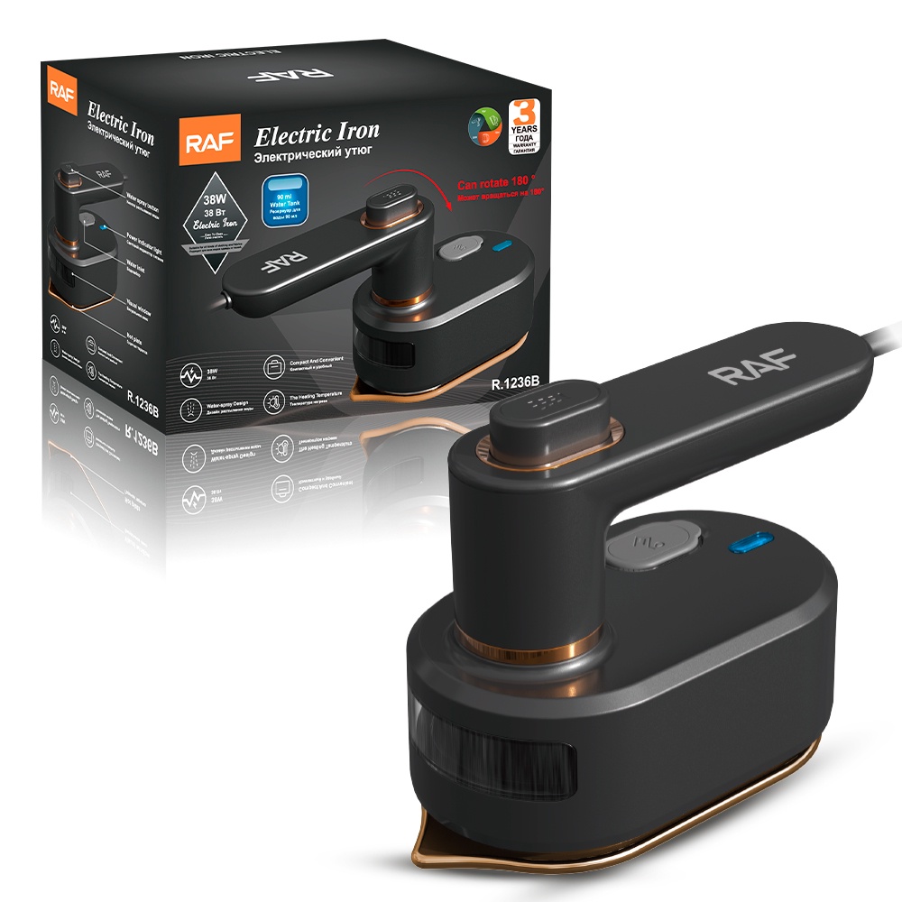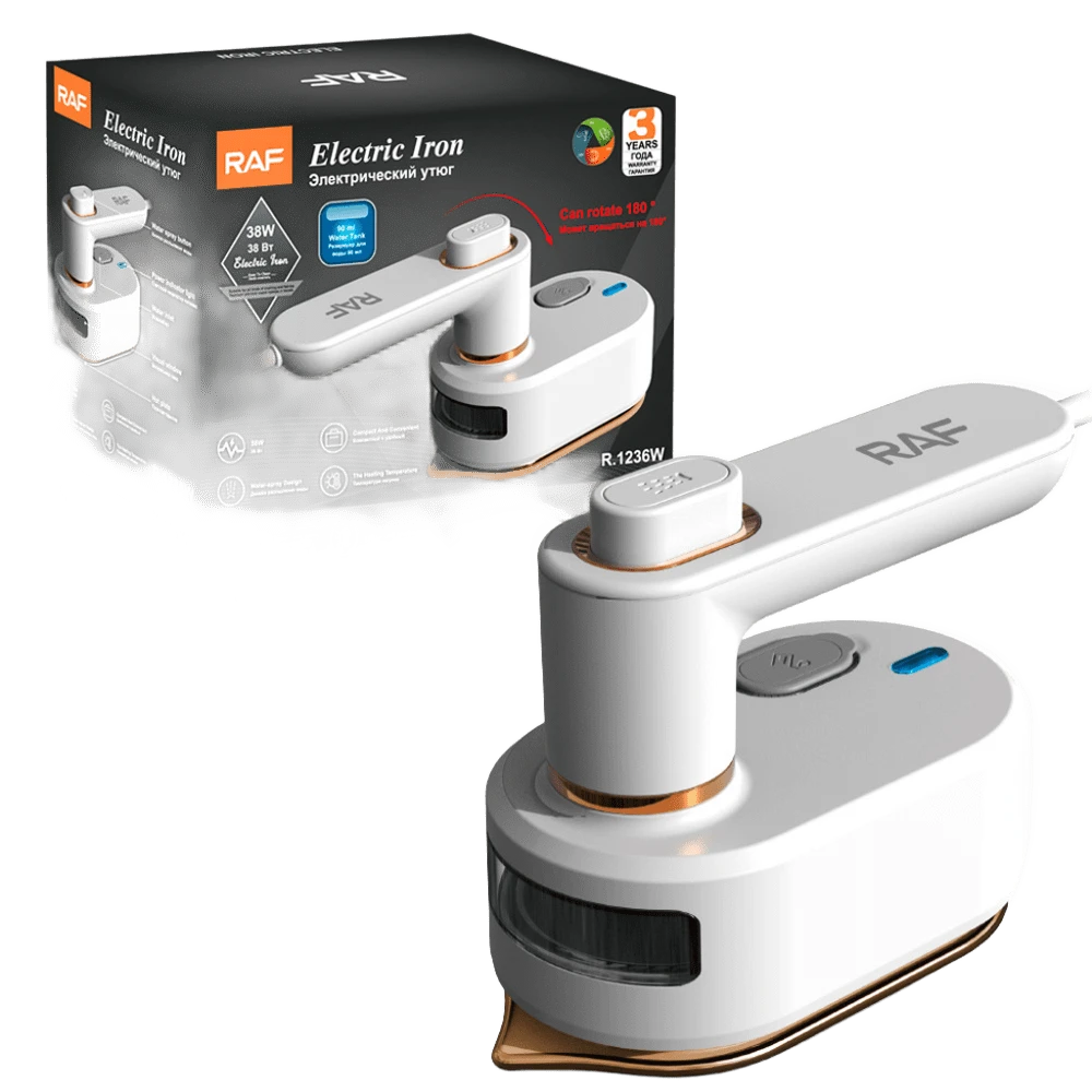 مكواة RAF الذكية بالبخار، تسخين سريع، رأس 180°، خفيفة ومثالية للسفر، آمنة على الملابس الحساسة وتكوي بسرعة ونعومة