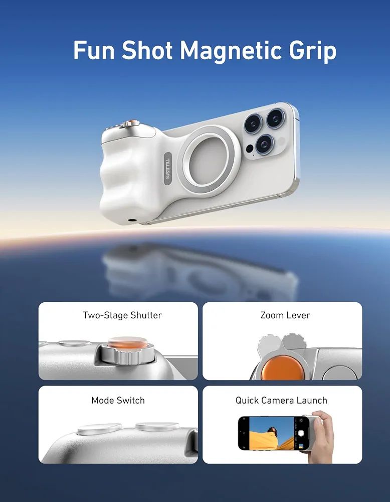 مع مقبض التصوير المغناطيسي، حول جوالك لكاميرا حقيقية! هذا المقبض الذكي يمنحك إحساس كاميرا DSLR بين يديك، مع تصميم مريح وتكنولوجيا متطورة تضمن لك نتائج مذهلة.
