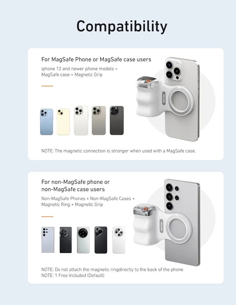 استمتع بتجربة تصوير احترافية، وشارك لحظاتك الجميلة مع العالم! لا تفوت الفرصة، احصل على مقبض التصوير المغناطيسي الآن!