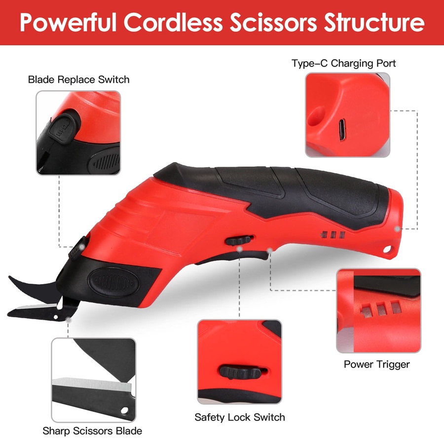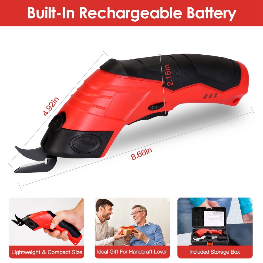 مقص شحن لقص الطرابيل والكراتين والأقمشة والسجاد، يتميز بشفرات ستيل حادة جداً، مما يجعله الخيار الأمثل لأعمال القص الدقيقة والسريعة. يأتي المقص مع شنطة مخصصة للحفاظ عليه من التلف، بالإضافة إلى شاحن سريع USB، مما يجعله سهل الاستخدام سواء كنت في المنزل أو في موقع العمل. لا تفوت فرصة تحسين تجربة القص لديك!