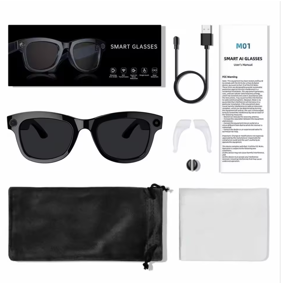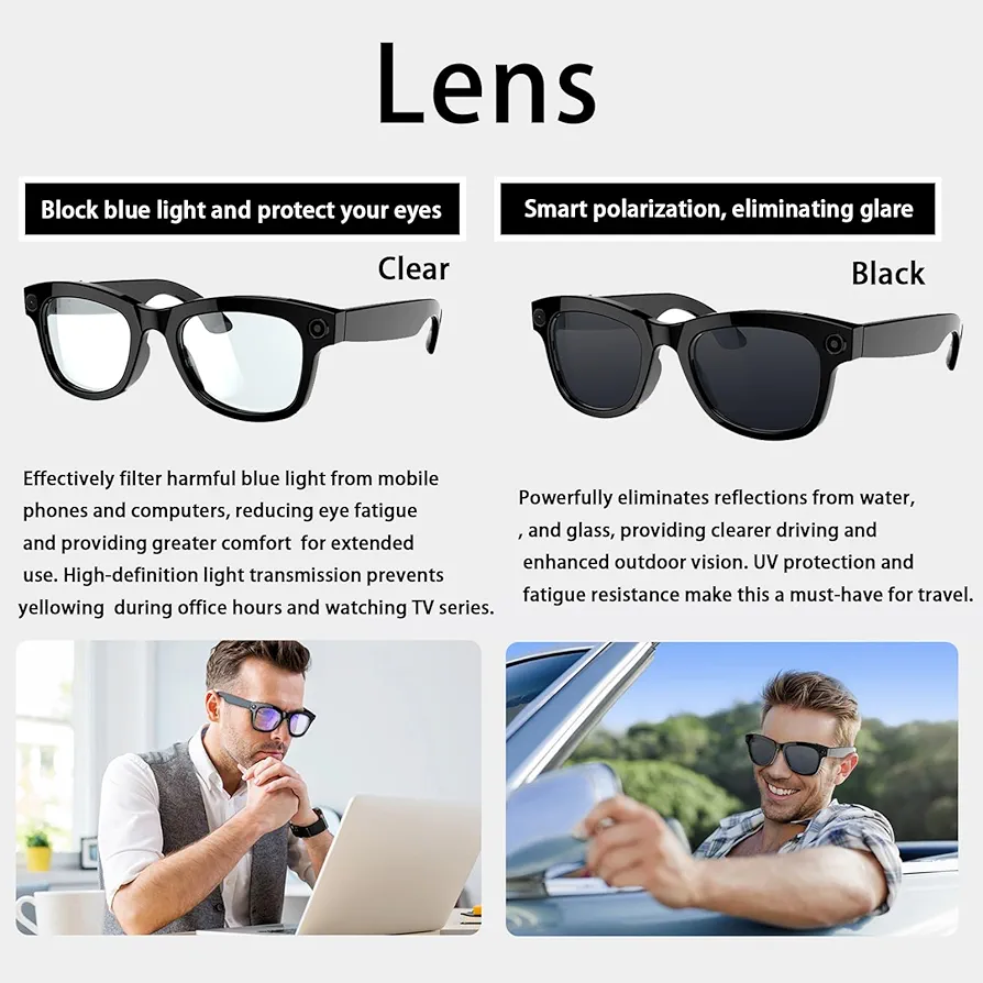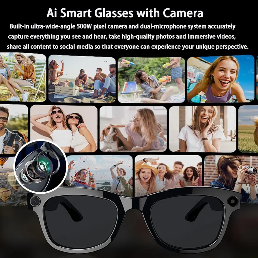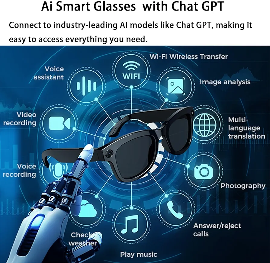 مع نظارة ذكية 01 بتقنية الذكاء الاصطناعي، انت مش بس تلبس نظارة، انت تلبس مستقبل! هذه النظارة بتجيب لك كل حاجة تحتاجها في يومك، من كاميرا مدمجة بدقة HD لالتقاط الصور والفيديو بجودة عالية، لحماية قوية من أشعة الشمس. يعني تقدر تستمتع بالشمس بدون قلق!