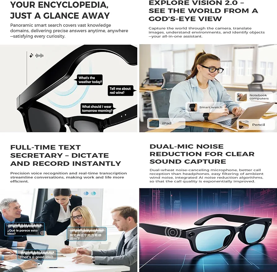وبالإضافة، النظارة توفر لك خاصية الترجمة الفورية وذكاء اصطناعي يساعدك في كل مكان. لا تفوت التقنية اللي بتغير يومك، جربها اليوم!