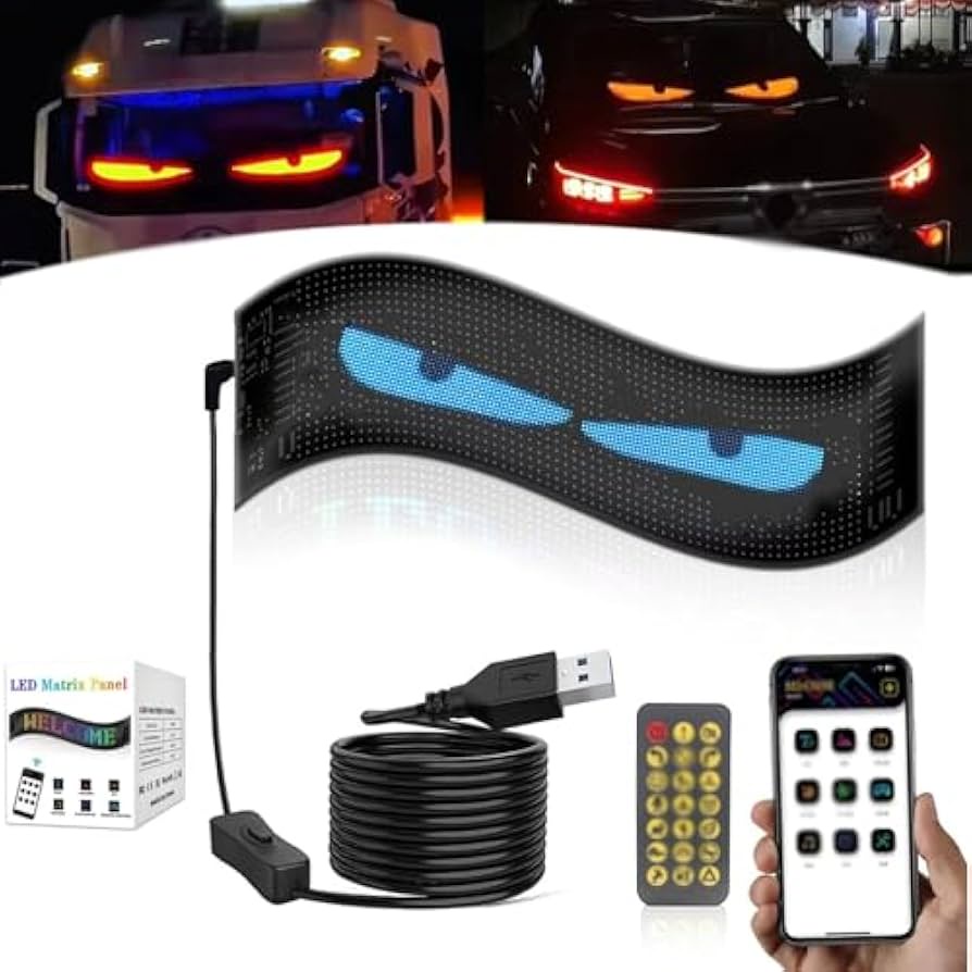 شاشة LED الذكية للسيارات (عيون الشيطان) – خلي سيارتك "تتحاكى" وتخطف الأنظار!
