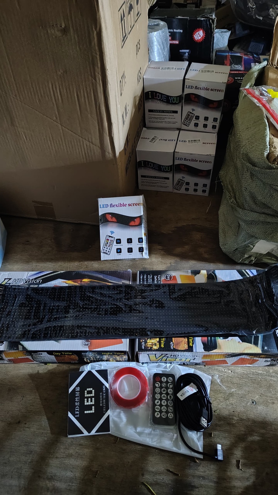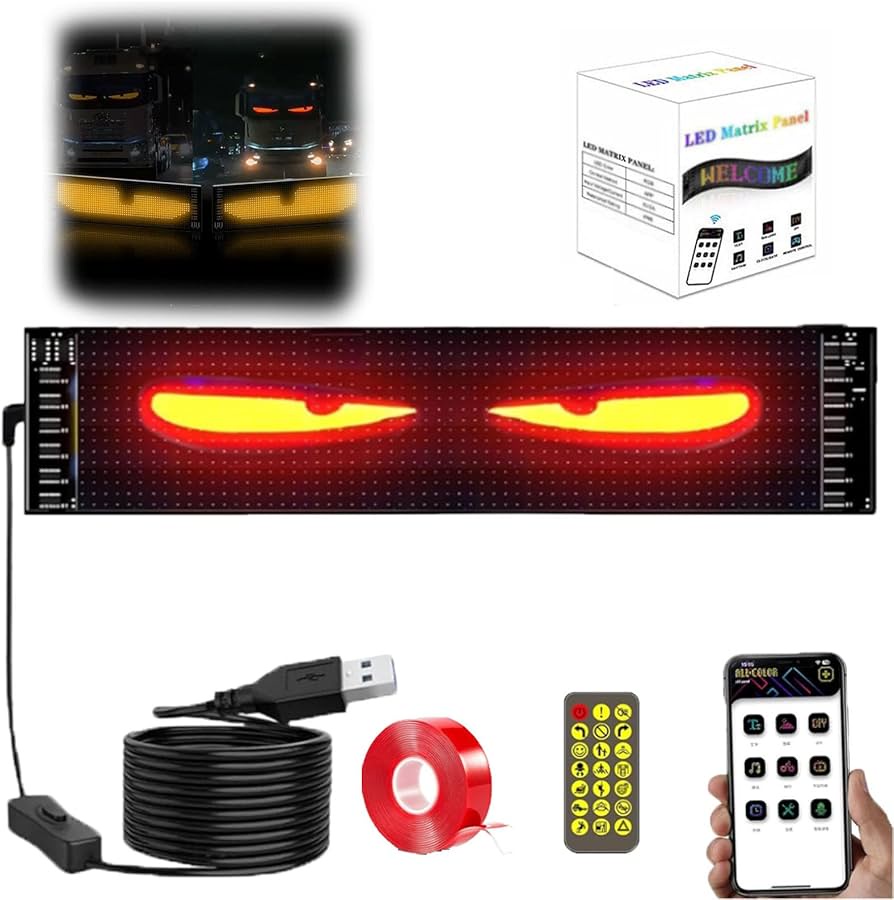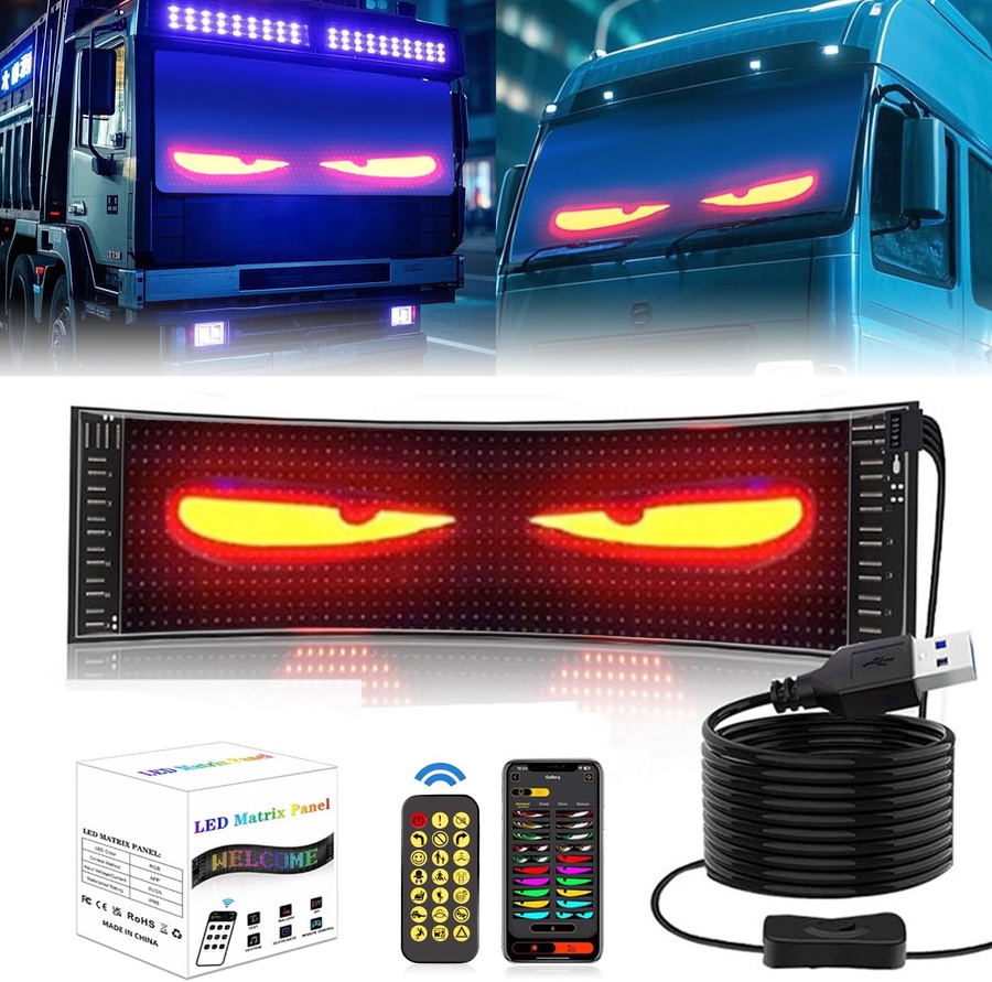 حول سيارتك إلى تحفة فنية مع شاشة LED الذكية (عيون الشيطان). لوحة مرنة RGB تتحكم بها من جوالك لعرض رسومات ونصوص متحركة مذهلة. سهلة التركيب وتعمل عبر USB