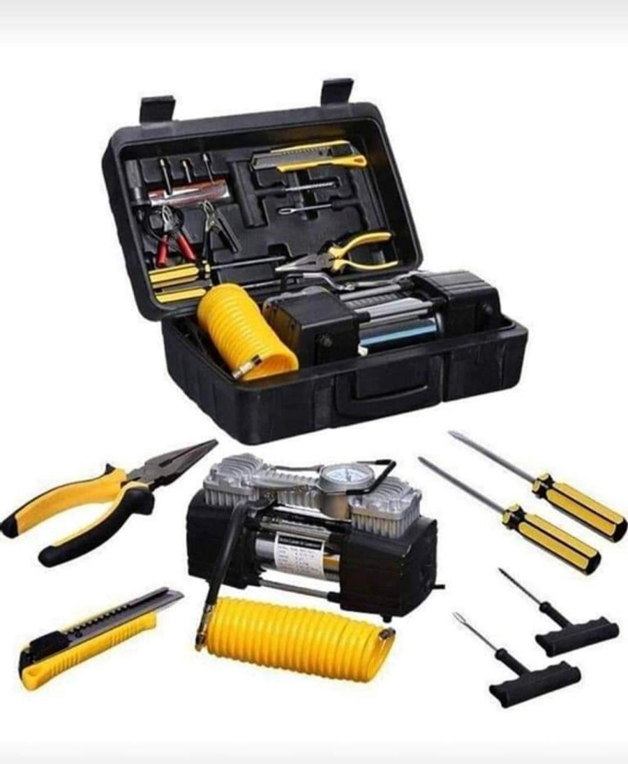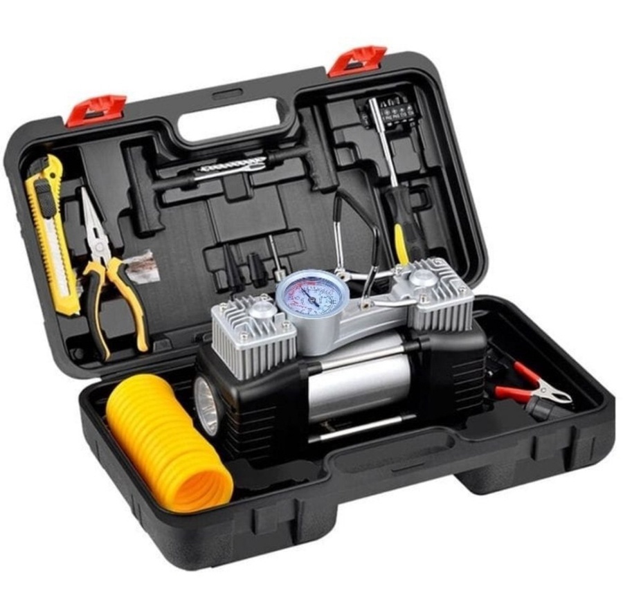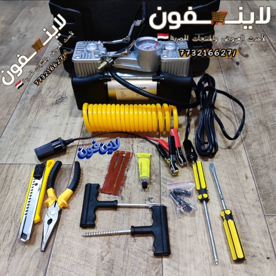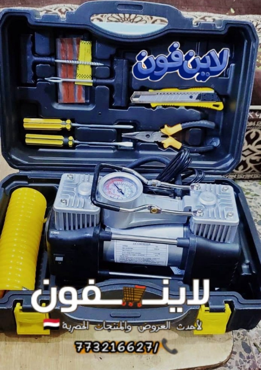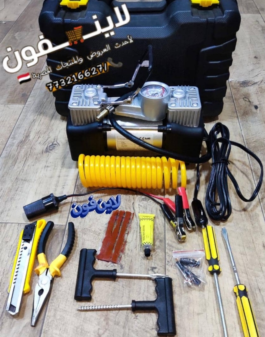 لا تخاف من البنشر! شنطة بنشر مع معبي هواء 2 بستم أبو جمل الأصلي، تعبئة سريعة وإصلاح فوري للطوارئ والسفر. جاهز لأي طريق.