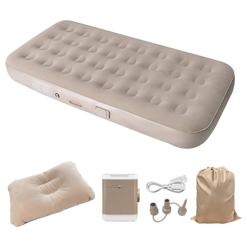 سرير هوائي متنقل قابل للنفخ مع خازن شحن ومنفاخ داخلي نوم مريح في أي مكان بدون تعب في النفخ منفاخ داخلي خاصية الشفط لتفريغ الهواء بسهولة تصميم قابل للطي