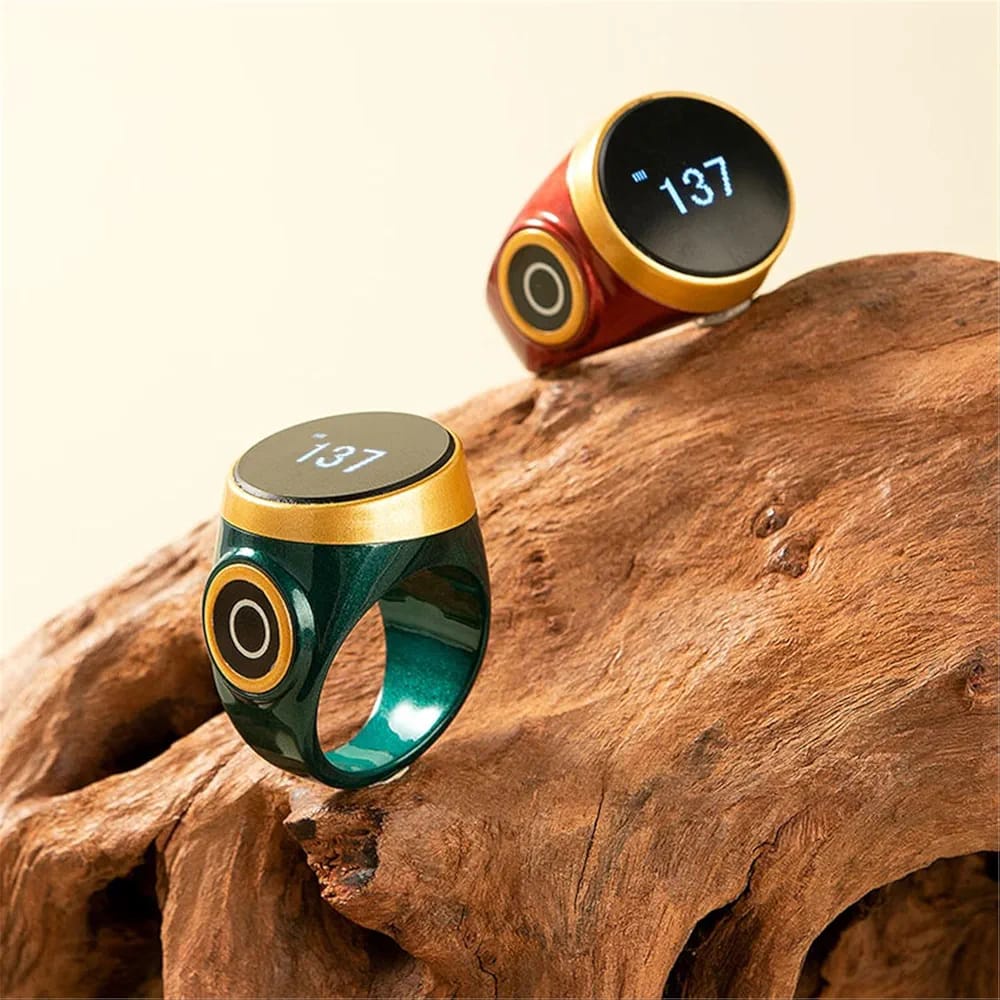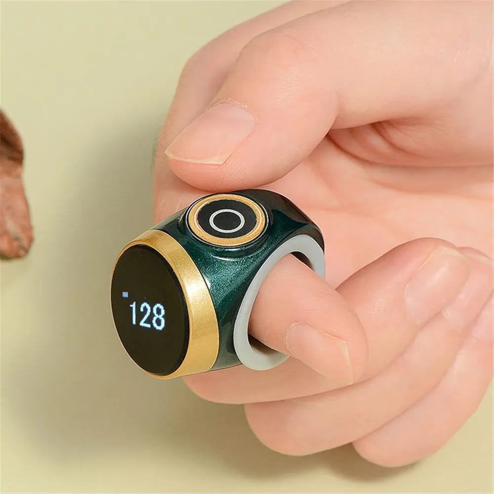 خاتم تسبيح ذكي بشاشة OLED وعدّاد رقمي دقيق، تصميم أنيق وخفيف ببطارية تدوم طويلًا، يجمع بين الروحانية والتقنية في قطعة عصرية.