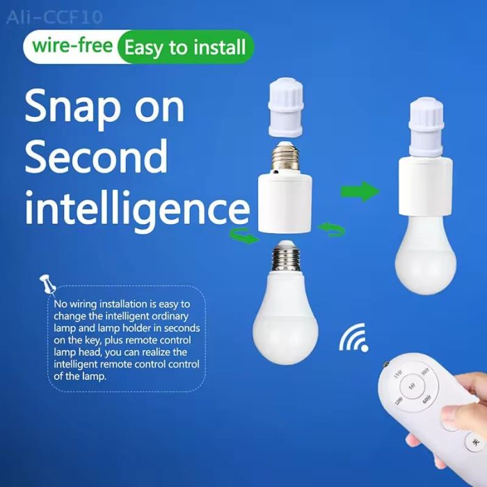حامل لمبة لاسلكي E27 يحوّل أي لمبة لإضاءة ذكية، تحكم بالريموت بدون تمديدات أو تكسير، تركيب سريع، حل آمن وسهل لكل بيت