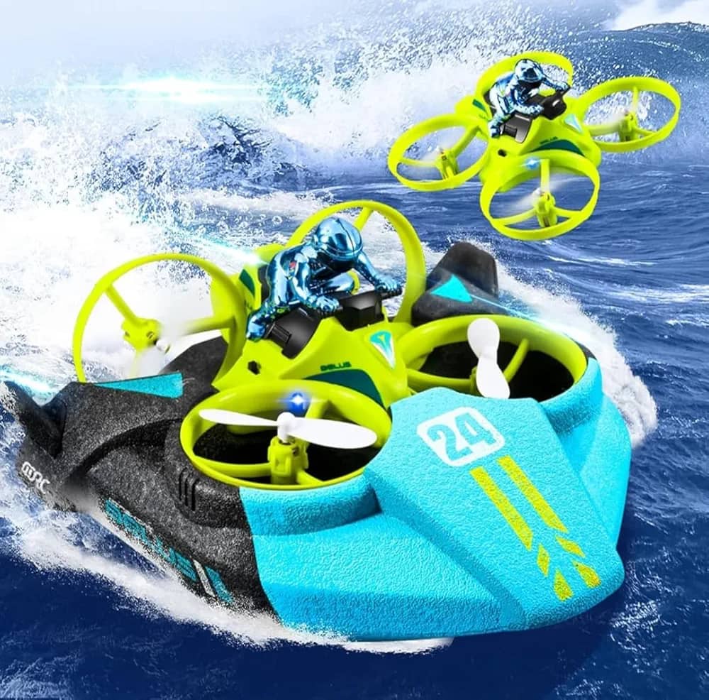 لعبة 3 في 1 مذهلة: تشتغل كطائرة درون في الجو، وسيارة سباق سريعة على الأرض، وقارب برمائي فوق الماء، متعة كاملة في جهاز واحد.