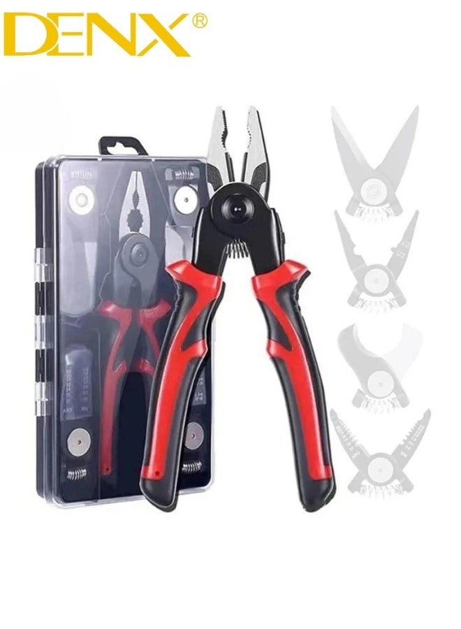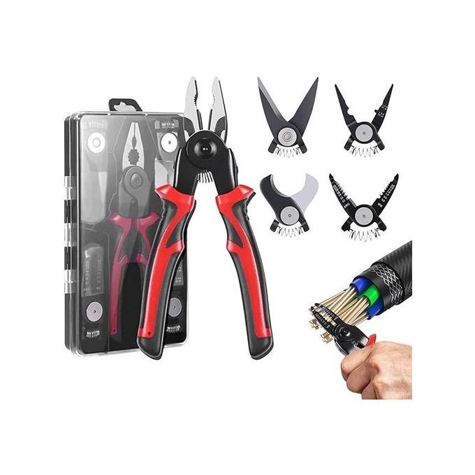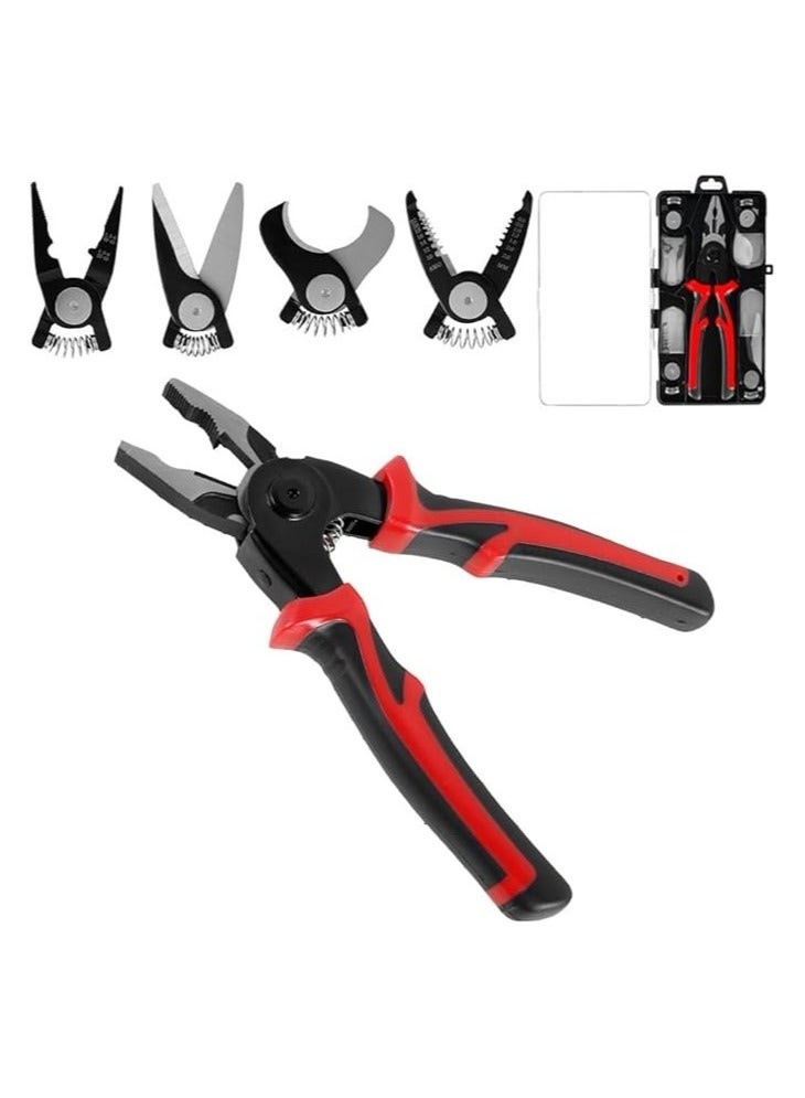 زرادية 5 في 1 احترافية للكهربائيين والمهندسين، فولاذ صلب، تبديل رؤوس سريع، تقشير وتجعيد وقص دقيق في أداة واحدة عملية